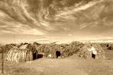 Poor huts in traditional african Dassanech village, Omo river, Ethiopia indigenous people houses
