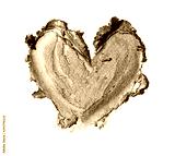 Smear of gold matte metallic lipstick or creamy eye shadow with heart shape isolated on white background luxury cosmetic concept