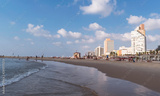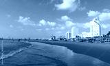 the late afternoon sun lights up the resort hotels on the beach in Tel Aviv in Israel