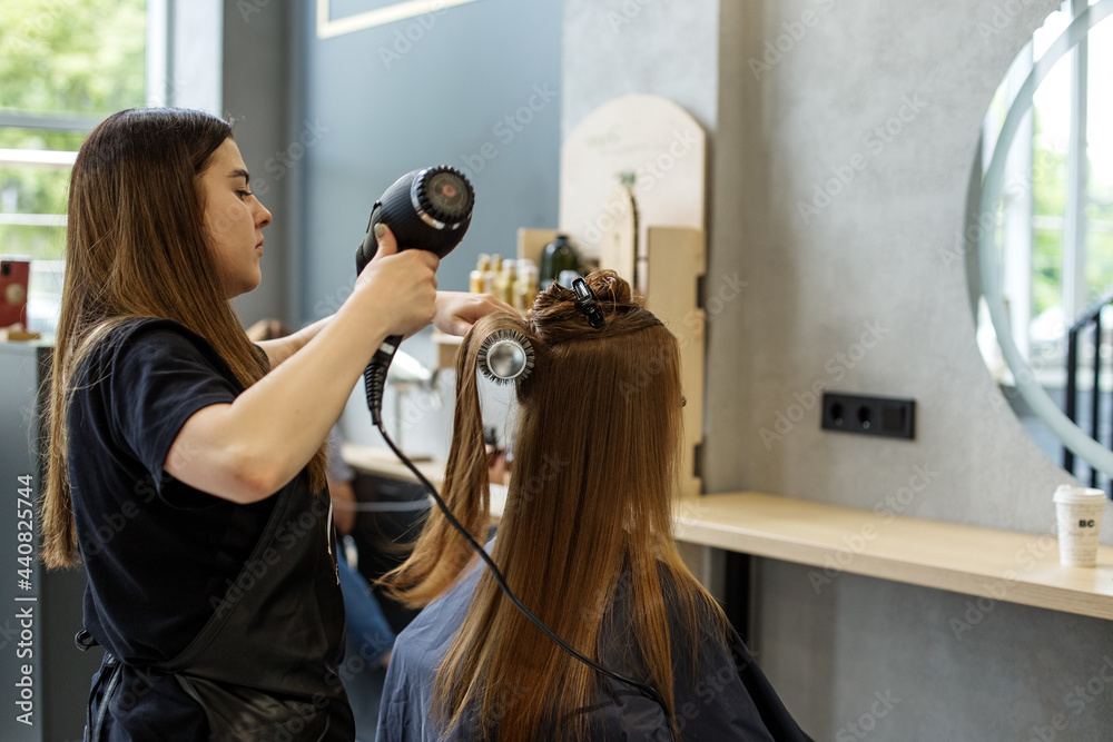 Top view of office desk table. Woman with red nails holding cup of coffee and writing with a pen in a notebook organiser near plant pot on white wooden table.