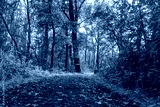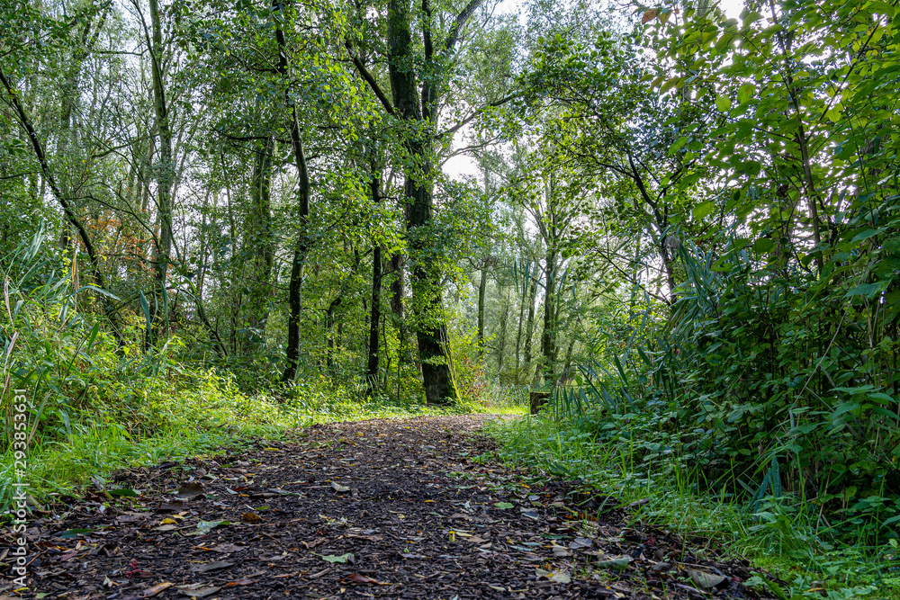 The leaves fall on this path of bark by the incident autumn, Zoetermeer, Netherlands 2