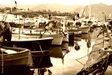 Old fishing boat with tackle in Italy