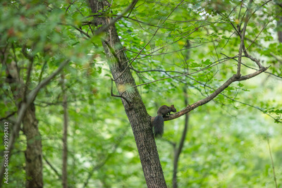 Squirrel prepares for winter, stocking up nuts