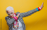 Funny grandmother portraits. Senior old woman dressing elegant for a special event. granny fashion model on colored backgrounds
