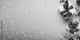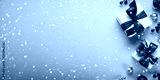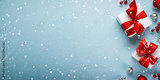 Christmas and New Year holiday background. Xmas greeting card. Christmas gifts on blue background top view. Flat lay