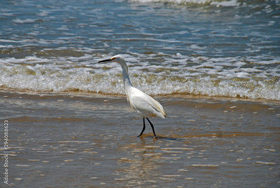 Snowy Egret on a beach of Arroio do Sal, Rio Grande do Sul, Brazil