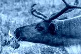 Side view of eating reindeer closeup. Horizontally.