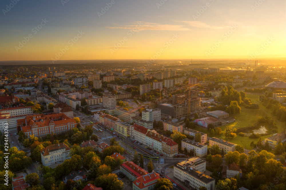 Morning sun illuminates the old town of Olsztyn. Warmia, Poland.