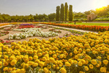 Oman, Muscat, Flowers in Sultan Qaboos Grand Mosque park.