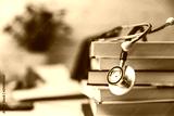 medical college student with stack of books
