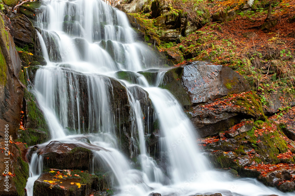 Mountain waterfall in autumn forest