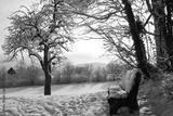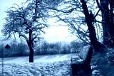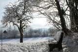 Winter landscape early moring after a light sknowfall in Zug, Switzerland. With tracks in the snow and trees