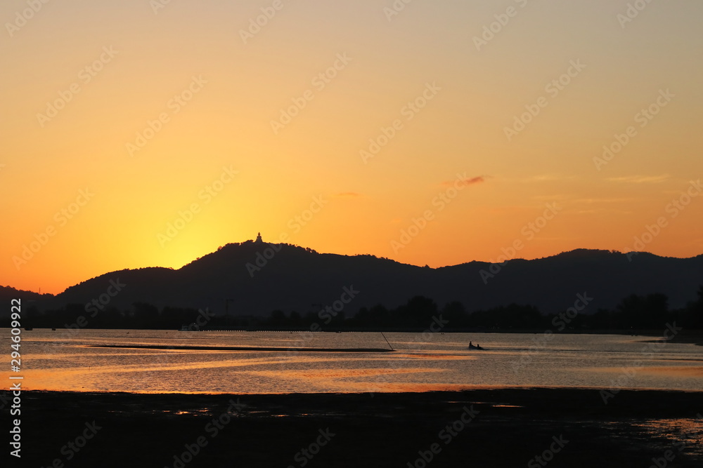 Beaches and mountains in the golden light of the sun. Phuket, Thailand