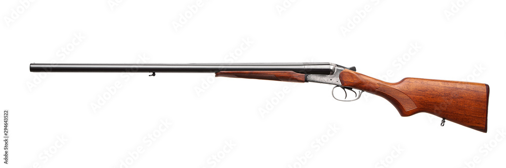 Hunting double-barrelled gun on a white background. Double Shotgun isolated on white back.
