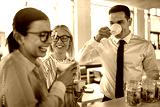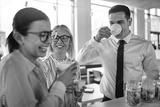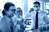 Young businesspeople laughing together during their office coffe