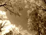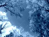 Yellow leaves against the blue sky. View of the colorful birch foliage from the bottom up. Birch grove on a sunny autumn day. Beautiful autumn wallpaper.