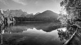 Colorful summer view of Fusine lake. Bright morning scene of Julian Alps with Mangart peak on background, Province of Udine, Italy, Europe. Traveling concept background.