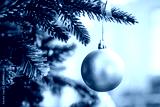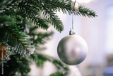 Christmas tree branch decorated with silver balls and white decor