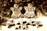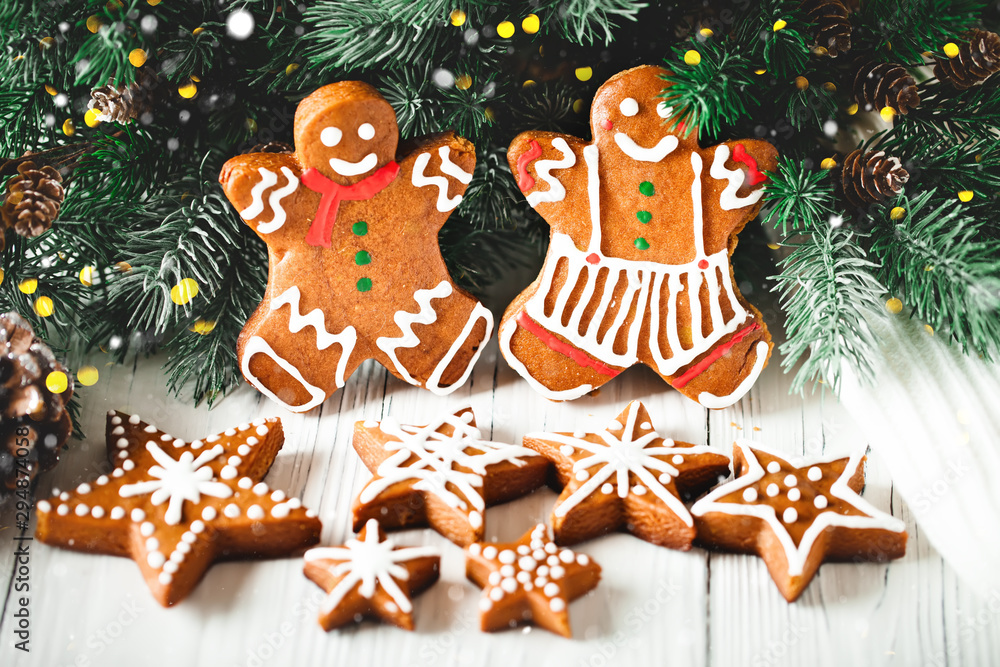 Christmas cookies on the background of a Christmas tree. Merry Christmas and happy New year. Selective focus.