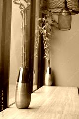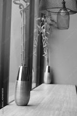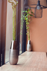 vase design with plant nature leaf tree on wood table in hotel holiday interior decoration
