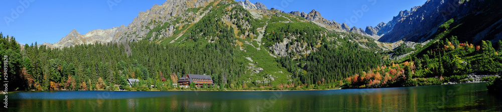 Panoramic photo of Poprad Lake in High Tatras, Slovakia