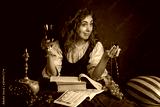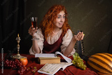 Red-haired girl in a historical suit plays the lute. Renaissance painting style.....