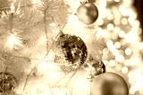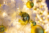 ball gold color, beautiful Christmas tree with decorations bokeh golden light background