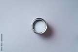 Open paint can with on pastel background. Top view, copy space. Appartment renovation, repair, building and home design concept.