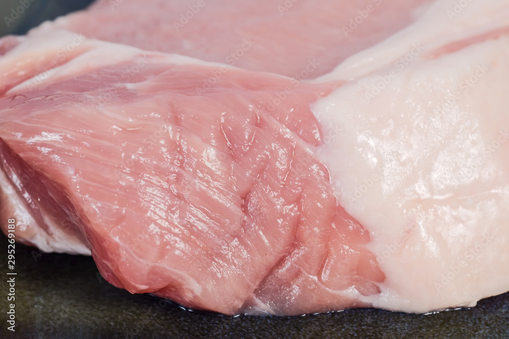 Close up Uncooked fresh pock meat on background.
