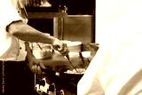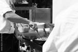 professional cook in kitchen preparing food for customers showing hands and utilities