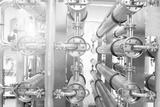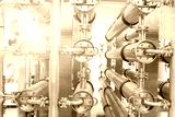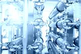 chrome pipes in heating and AC rooms in buildings of factories and hospital