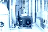 chrome pipes in heating and AC rooms in buildings of factories and hospital