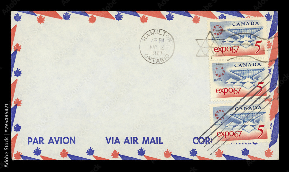 Luftpost airmail Umschlag envelope Canada Kanada Ahorn Blatt Ontaria Vintage retro expo 67 Hamilton Ontario gestempelt Briefmarken