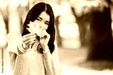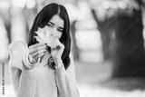 Beautiful woman posing for the camera with autumn leaf. Happy Autumn.