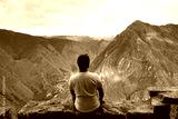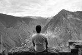 Traveller at the Lost city of the Incas, Machu Picchu,Peru on top of the mountain, with the view panoramic