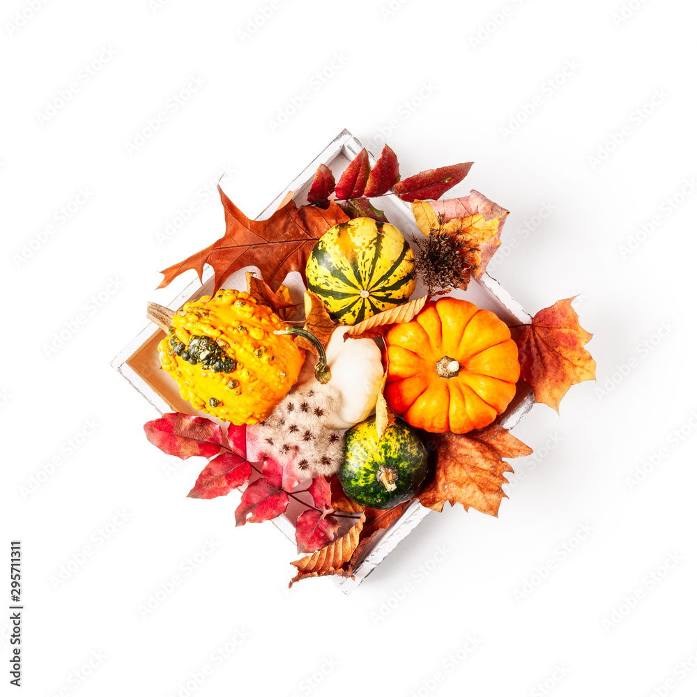 Pumpkins arrangement on tray