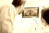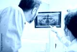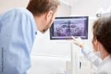 Zahnarzt erklärt einem Patient Röntgenaufnahme