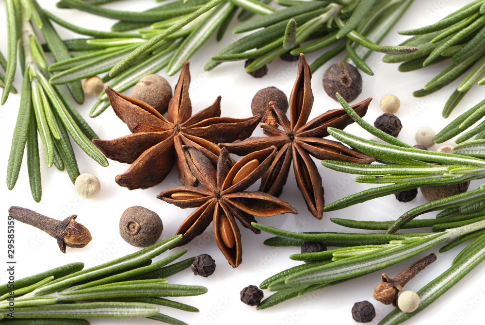 Rosemary, peppercorn, cloves and anise