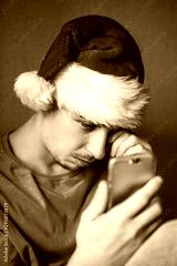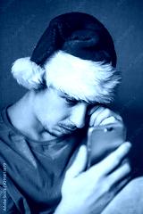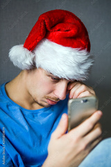 Sad Young Man in Santa Hat