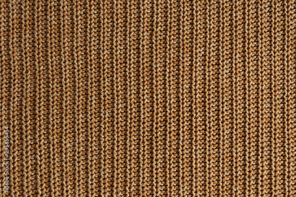 Cropped close up shot of seamless woolen knitting pattern of fall / winter season warm sweater, clearly visible fiber texture of stylish hipster knitwear clothing. Background, copy space, top view.
