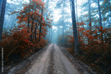 path in misty autumn forest