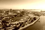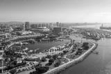 Aerial panoramic view of the Long Beach coastline, harbour, skyline and Marina in Long Beach with Palm Trees,. Beautiful Los Angeles.