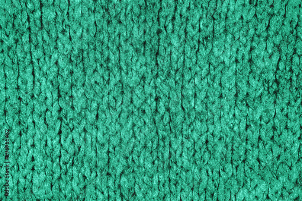 Loose Knitwear Fabric Texture with wool fibers. Repeating Machine Knitting Texture of warm Sweater. Trendy mint colored Knitted Background.