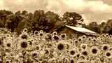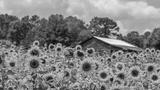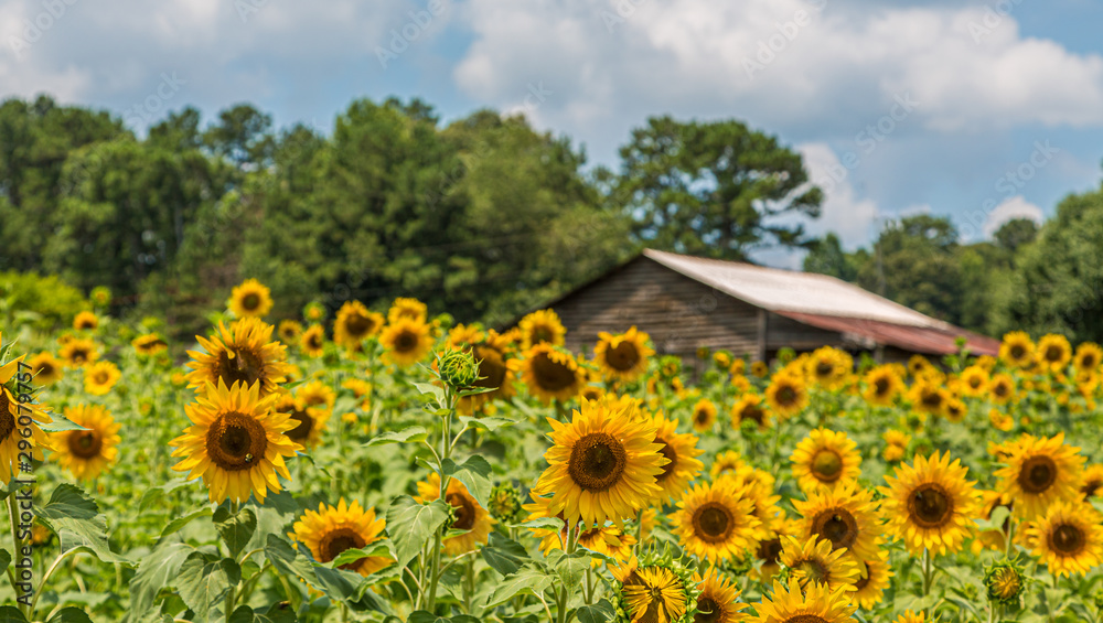 An image from a beutiful summer field full of bright yellow and green sunflowers