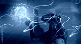 Young woman using glasses of virtual reality on dark background. Smartphone using with VR headset,virtual reality,future technology concept.Asian woman using VR glasses in colorful neon lights.