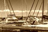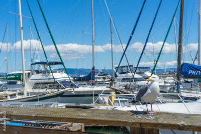 Sunny Day View of Pier 39 Marina with yachts and boats docking in San Francisco,CA