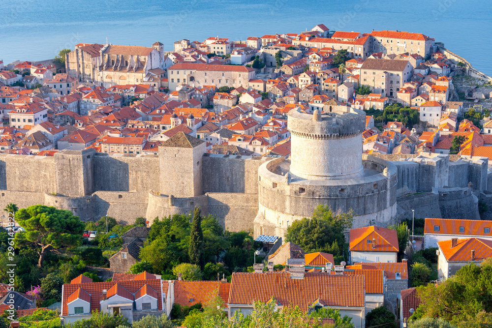 Scenic aerial view of Dubrovnik city on a sunny morning.