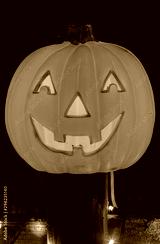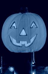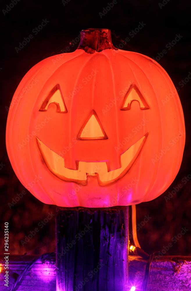 Jack-O-Lantern Pumpkin Glowing at the Dark in Halloween Season.