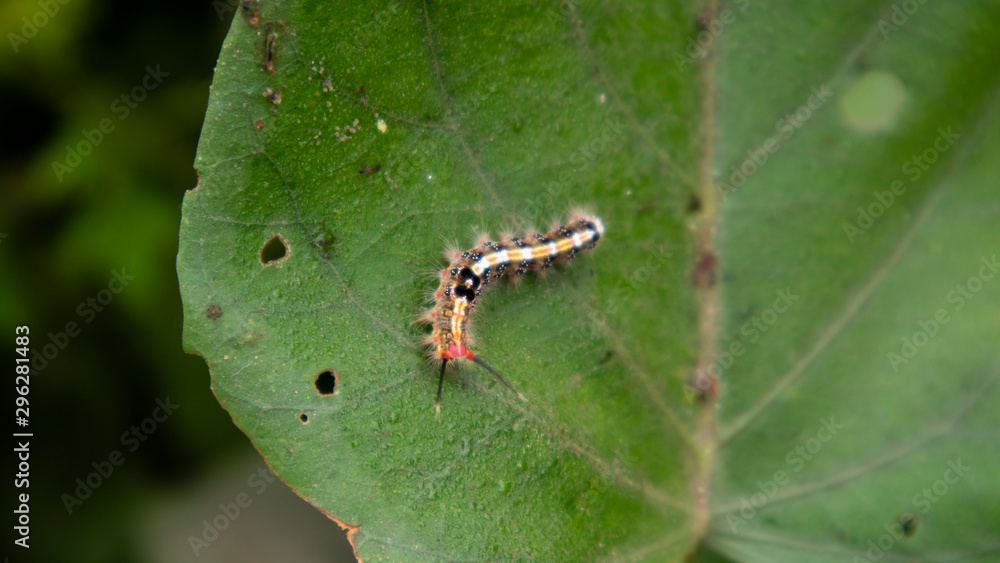 A caterpillar that is metamorphosed into a butterfly is eating leaves