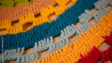 Colorful crochet thread with abstract ornaments. Usually shaped tablecloth